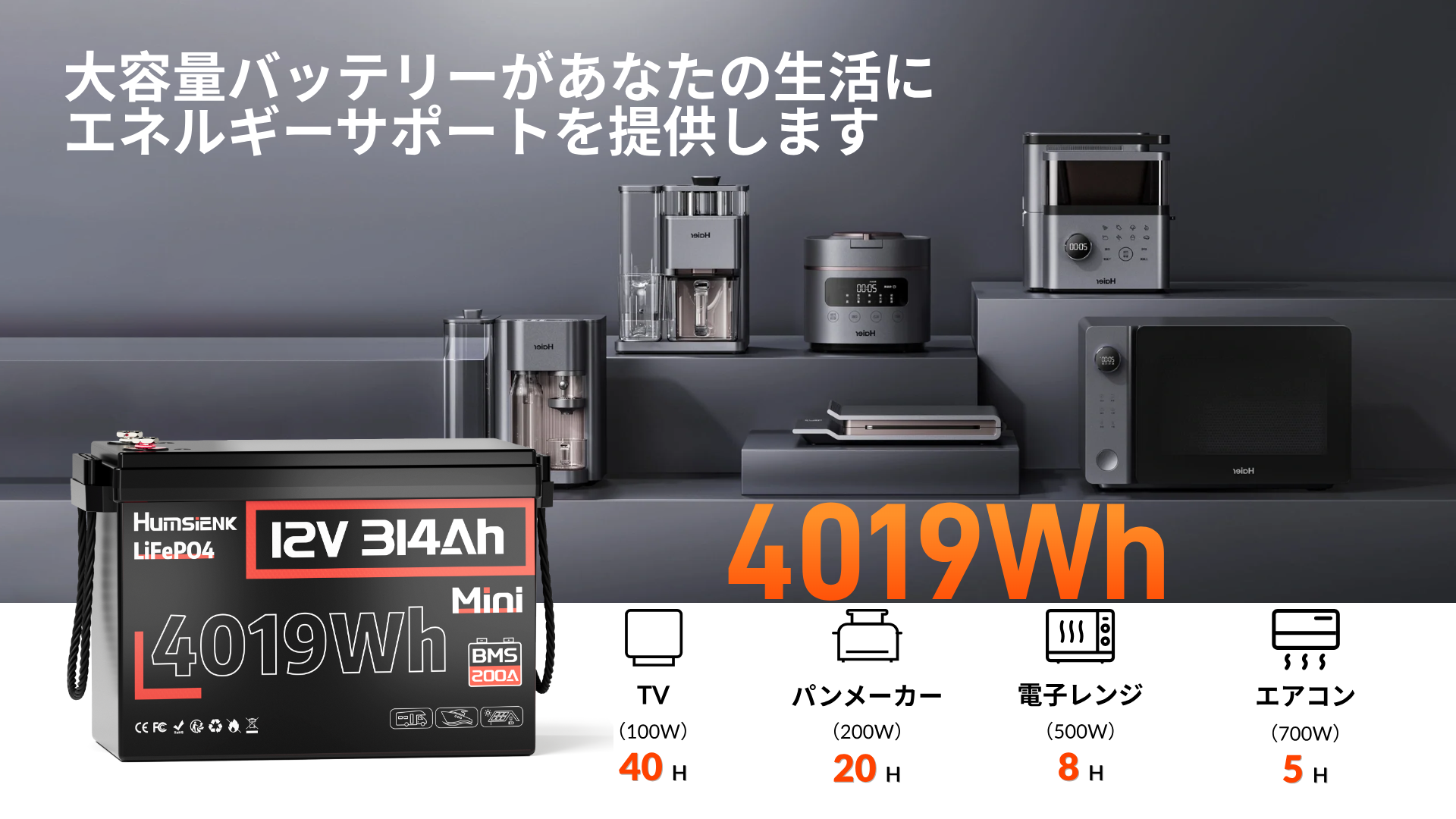Humsienk 12V 314Ah リン酸鉄リチウム電池、超コンパクト設計、エネルギー容量 4.01kWh。